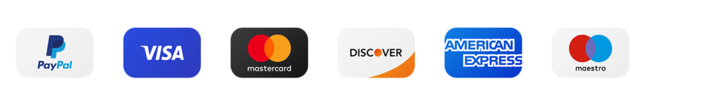 Aceptamos tarjetas de crédito, PayPal y transferencias bancarias.
